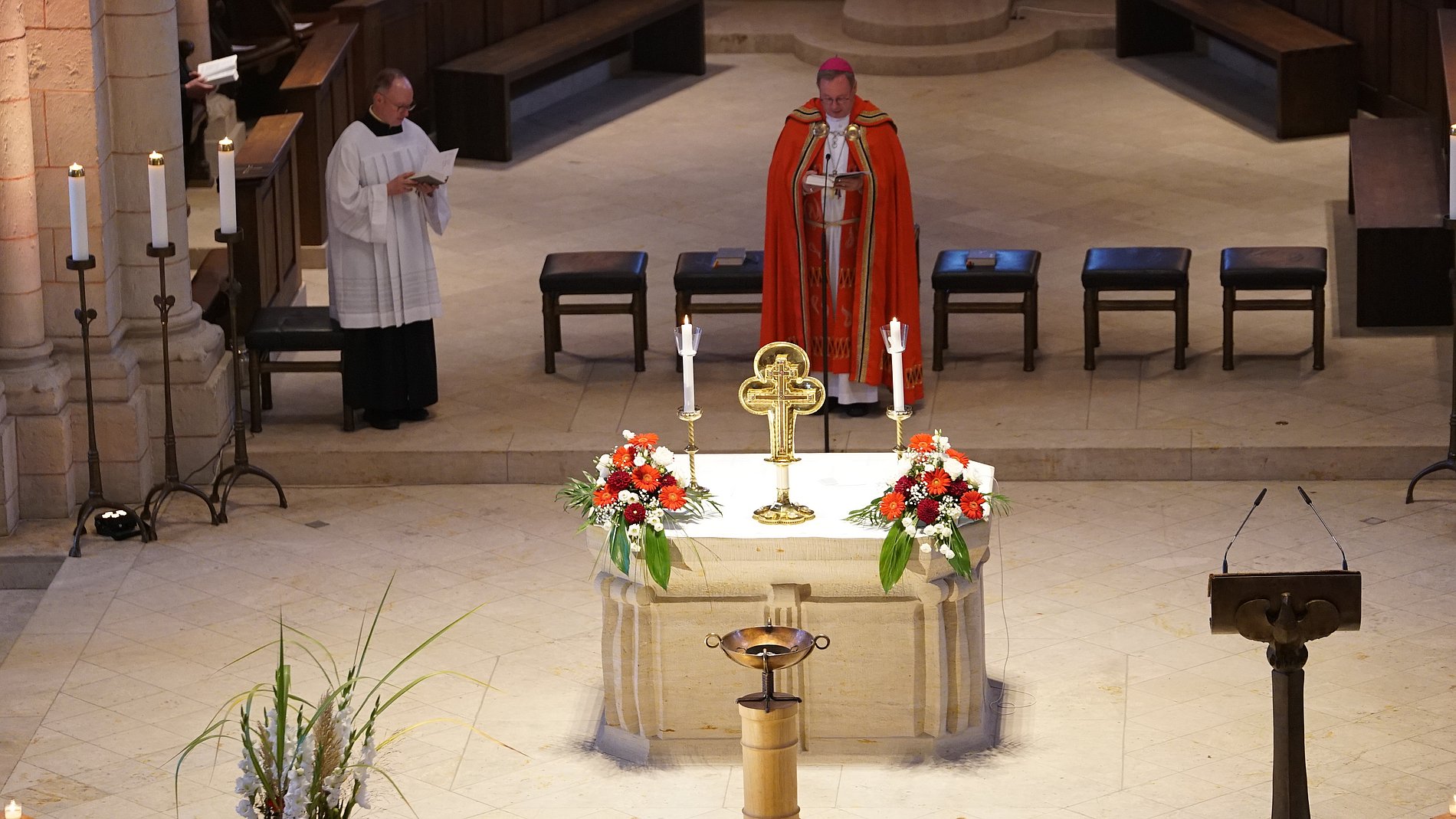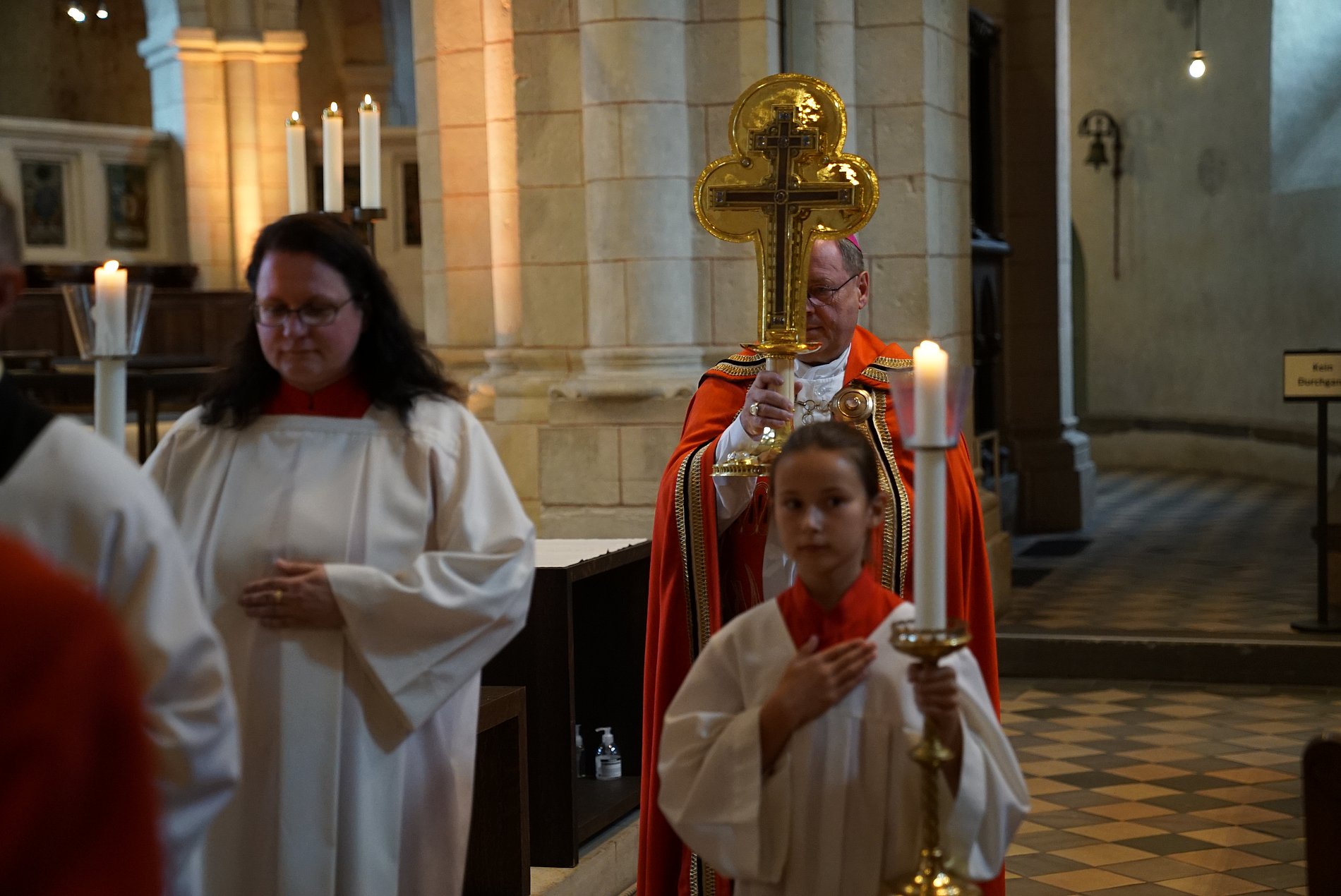 Bischof Georg Bätzing hat das Kreuzfest mit einem Gottesdienst im Limburger Dom eröffnet. Was da natürlich nicht fehlen darf: Die Kreuzreliquie, der Grund für das alljährliche Fest im Bistum Limburg. Die Holzfragmente sind aus dem Kreuz, an dem Jesus gestorben ist. Musikalisch haben die Limburger Domsingknaben die liturgische Eröffnung begleitet.